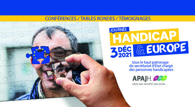 Le Groupement APAJH 22-29-35 organise le vendredi 3 décembre 2021, au Palais des Congrès de Saint Brieuc, une journée régionale sur le thème « Faire société : Attente des personnes en situation de handicap et stratégie Européenne 2021/2030 ».